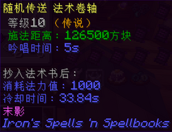 在将卷轴存入铁魔法魔法书后,可以'''无限次数'''的使用随机传送魔法。